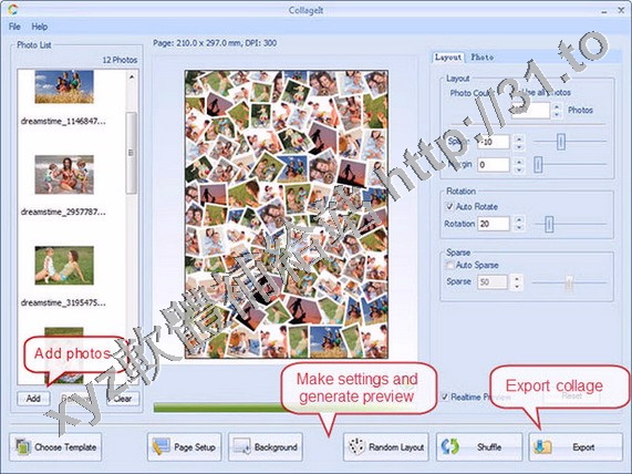 CollageIt是一個易於使用的自動拼貼製造,這使得照片自動拼貼,只有三個步驟,讓