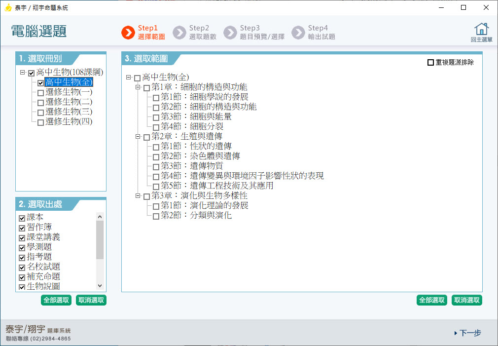 112學年上學期 高中命題光碟 泰宇版 生物科(全、選修一、選修二、選修三、選修四)(108課綱)題庫光碟