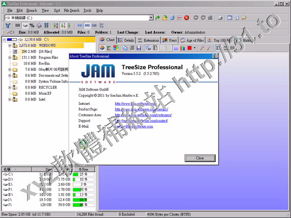 JAM Software TreeSize Professional v5.5.3.793 英文正式版(硬碟空間回收軟體)